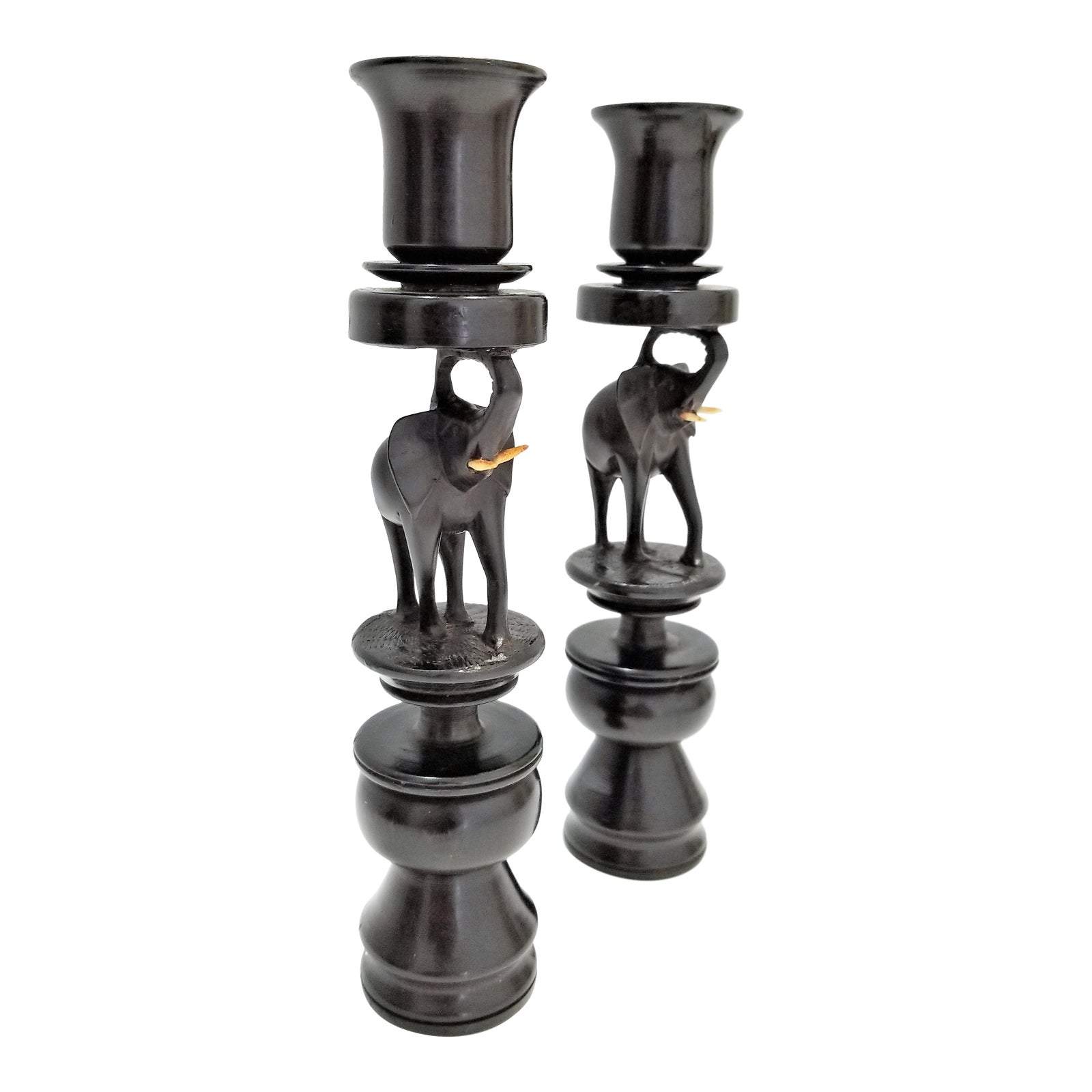 Ebony Candle holders are made of ebony wood of East Africa, They are handcrafted and are used to hold candles.