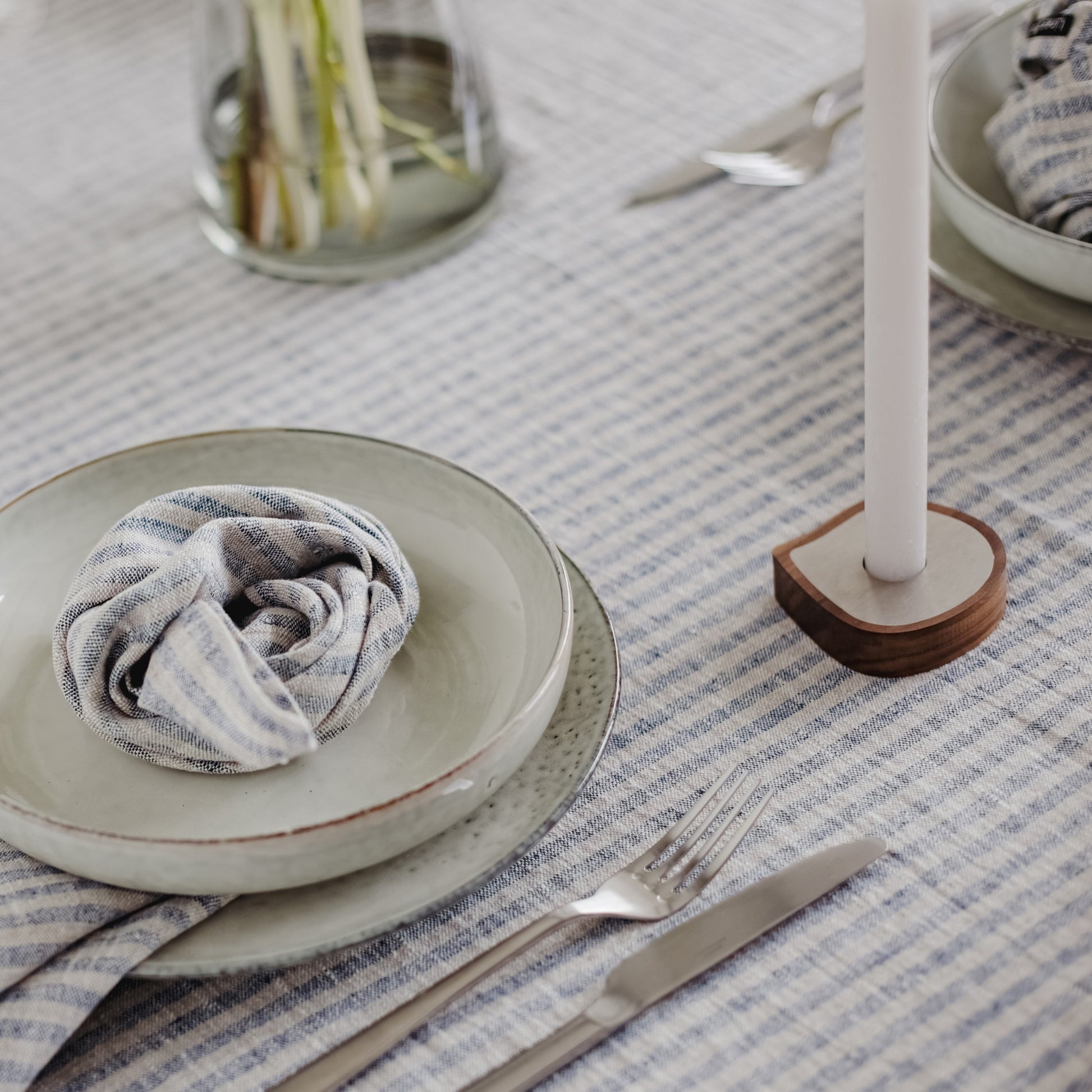 Organic shape wooden candle holder with an elegant touch of metal. The minimalistic and subtle design.